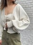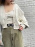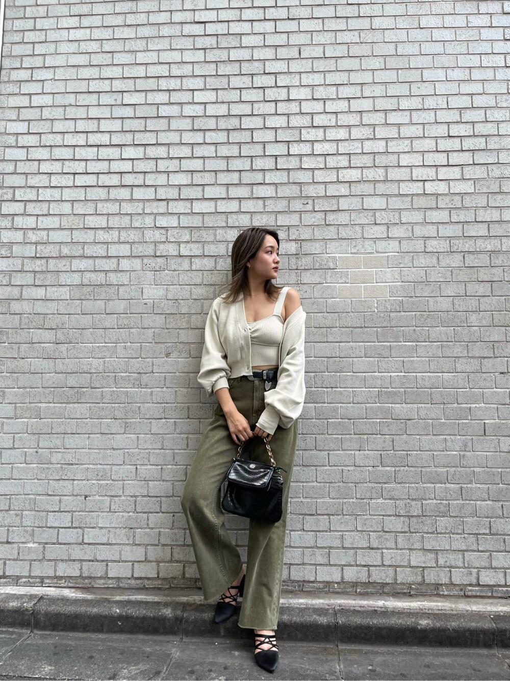 大人カジュアルコーデ♡ 【トップス】ビスチェと羽織りがセットになったトップスは着回し抜群のおすすめアイテム! 伸縮性のあるニットでサラッとした素材なので9月にリアルに着れるニット♪Tシャツの上からビスチェだけでも可愛いですし、お持ちのワンピースなどに羽織りを合わせるのも◎袖のボリューム感が女性らしいですよね! 【デニム】EVRISの定番デニム♡ どの角度から見ても綺麗なデニム! 秋なのでカーキ色で季節感も取り入れてみました! ホワイト×カーキの組み合わせだけでオシャレ見えしますよね♪163cmでSサイズ着用してくるぶしがかくれるくらいの丈感になるのでスニーカー合わせも◎ 私はミュール合わせで、ワイドデニムでも少しキレイめにまとまるようにしました!