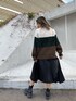 【トップス】配色が可愛いブロッキングニット! 生地もモチっとしてて柔らかく肌触り◎ 164cmでヒップ隠れるくらいでゆったり着ていただけます♡ 【スカート】細かいプリーツが特徴のフェイクレザースカート! 裾がランダムヘムになっていて歩くとより動きがでてオシャレ♪ウエスト周りは少しゆったり目な作りになっています! 【ブーツ】 24.5cmでLサイズです! キレイめなスタイリングにゴツめなシャークソールブーツでトレンドコーデに♡
