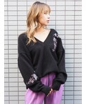 【ワンピース】ゼブラ柄のインパクトがあるワンピース!総柄ですがポリエステル100%なのでサラッとしたサテンのような生地感でかなり動きのでるワンピースになっています! 1枚でも可愛いですがレイヤードとして使うのがオシャレ♪ 【ニット】ゆるっとした大きめニットに刺繍が施されており深めのVネックがポイント! 164cmの私だとしっかりヒップがカバー出来る長さになっています♪ 【シューズ】24.5cmでLサイズ着用。