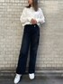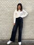 【TOPS】今季トレンドのチャイナロンT♡ オーバーサイズなので、ゆるっと着て頂けて164cmの私でもヒップが隠れる長さで着れます! フロントがシンプルなので合わせやすい◎ 【デニム】 サイドにクラッシュが入ったデニム! ワイドパンツでも太すぎないのでとても美脚効果があります♡ 164cmだとMサイズでもスニーカー合わせできます♪