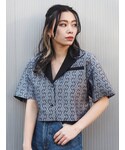 【シャツ】 今期トレンドのチャイナ柄が施されたショート丈のシャツです。 厚手のしっかりとした生地なのでシワになりにくくか襟や肩のシルエットは綺麗にキープされ着用出来ます! 総柄ですが、光沢感のある大人っぽいデザインと落ち着いた色味の組み合わせなので手に取りやすくなっています♡ 【デニム】 164cmでSサイズ着用でスニーカー合わせが◎ サイドにさり気ないダメージが可愛い♡ あえて加工されたブラックのデニム合わせをし抜け感を出しました♪ 【ベルト】 EVRIS定番のバックルデザインベルト! 再入荷しています♡