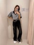 【シャツ】 今期トレンドのチャイナ柄が施されたショート丈のシャツです。 厚手のしっかりとした生地なのでシワになりにくくか襟や肩のシルエットは綺麗にキープされ着用出来ます! 総柄ですが、光沢感のある大人っぽいデザインと落ち着いた色味の組み合わせなので手に取りやすくなっています♡ 【デニム】 164cmでSサイズ着用でスニーカー合わせが◎ サイドにさり気ないダメージが可愛い♡ あえて加工されたブラックのデニム合わせをし抜け感を出しました♪ 【ベルト】 EVRIS定番のバックルデザインベルト! 再入荷しています♡