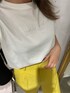 【Tシャツ】 テロっとした柔らかい肌触りのTシャツ。 フロントには同色のさり気ないロゴ入りです♪ 私は少し中に折り曲げてショート丈っぽく着てますが、腰くらいまでの丈感でも着れるので着回し抜群です! ホワイトでもそこまで透け感は気にならずに着用頂けます! 【パンツ】 カラーストレートパンツは、腰からストンっと落ちるシルエットなので本当に美脚効果が◎ ウエストも後ろがゴムになっているので履きやすく、 164cmでSサイズ着用していて踝くらいの丈感です。 【シューズ】 24.5cmでLサイズ着用。 【BAG】 かなりコンパクトなBAGですがマチもあるので型崩れしにくくオールシーズンお使い頂けます♡