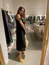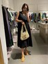 【ワンピース】 綿100%のワンピース! 164cmで脹ら脛くらいの丈感で着れます。 しっかり裏地も付いているので透け感気にせず着用でき、Vネックなので顔周りスッキリ見えます♡ アーム周りもゆったりしすぎていないので下着が見える心配もなく着て頂けます! 【シューズ】 24.5cmでLサイズ着用。 【BAG】 ペーパー素材を使用した春らしいかぎ編みバッグ! 中には巾着バッグがセットで付いています。