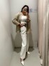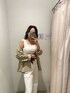 【アウター】サテン素材のルーズジャケット♡ テロっとした柔らかい羽織りでジャケットでも薄手なので春先お使い頂きやすいです! 164cmでもヒップが隠れるくらいなので低身長の方だとワンピースっぽく着ていただくのも可愛いです♡ 【トップス】 スクエアネックのタンクトップは、カップ付きなので1枚で着用可能◎白でも透ける心配がありません♪ カップは取り外し可能です! 【デニム】 今季トレンドのサイドスラッシュデニム! さり気ない肌見せとクラッシュがかなり上目に施されているので自然と脚長効果も◎ フレアのシルエットですが少しゆったりしたデザインになっています。164cmでスニーカー合わせも出来る丈感です! 【シューズ】 24.5cmでLサイズ着用。