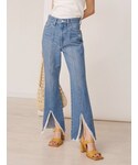 【トップス】 コットン素材のノースリTOPS! ウエスト部分にはゴムが入っているので自然と絞まりウエストの細見え効果が◎ ショルダー部分のリボンは取り外し可能です! 【デニム】 164cmで少しゆるっと履きたかったのでMサイズ着用しています! センターラインのおかげで脚が真っ直ぐ綺麗に見え脚長効果も抜群です! 裾のスリットデザインがポイントでショートブーツと合わせるのも可愛いですよ♡ 【シューズ】 24.5cmでLサイズ着用です。