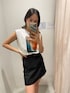 【トップス】 フロントプリントのノースリTシャツはロング丈なので164cmの私でもヒップが隠れる位の長さになっています!なのでボトムスにインをしてトップス風で合わせて見ました♡キャミソールとは違いボックス型なので肌見せが軽減でき二の腕が気になる方でも挑戦しやすいシルエットなのでおすすめです♡ 【スカート】 インナーショーパン付きのスカート。 ツイル素材なのでオールシーズン着用できます! 164cmでMサイズ着用です。 【シューズ】 24.5cmでLサイズ着用です。 【BAG】 バケツ型のバッグは持ち手が3パターン楽しめ、 350ml位のペットボトルが入るサイズ感です!