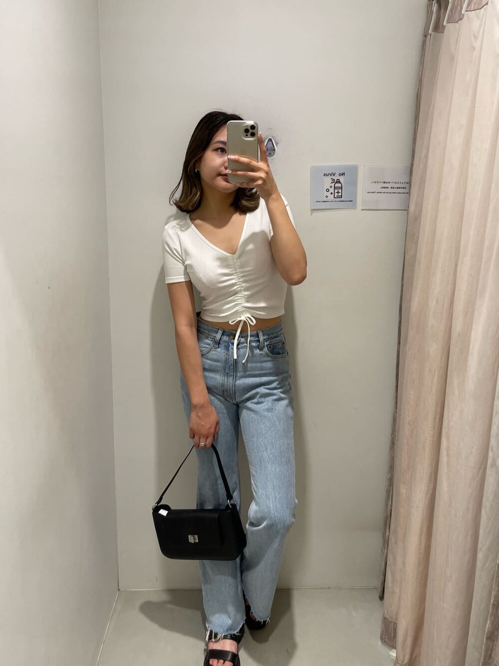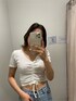 【ラフな私服コーデ!】 【トップス】リブ地で柔らかく伸縮性あり着心地抜群!フロントのドロスト部分で着丈調節が可能なのでハイウエストのデニムを履く際にも肌見せ調節出来ちゃいます♪ 【バッグ】今季トレンドの横長ハンドバッグは持つだけでお洒落度UPアイテム!中にはポケットが2箇所付いてあるので収納も便利! 【シューズ】24.5cmでLサイズ着用です。