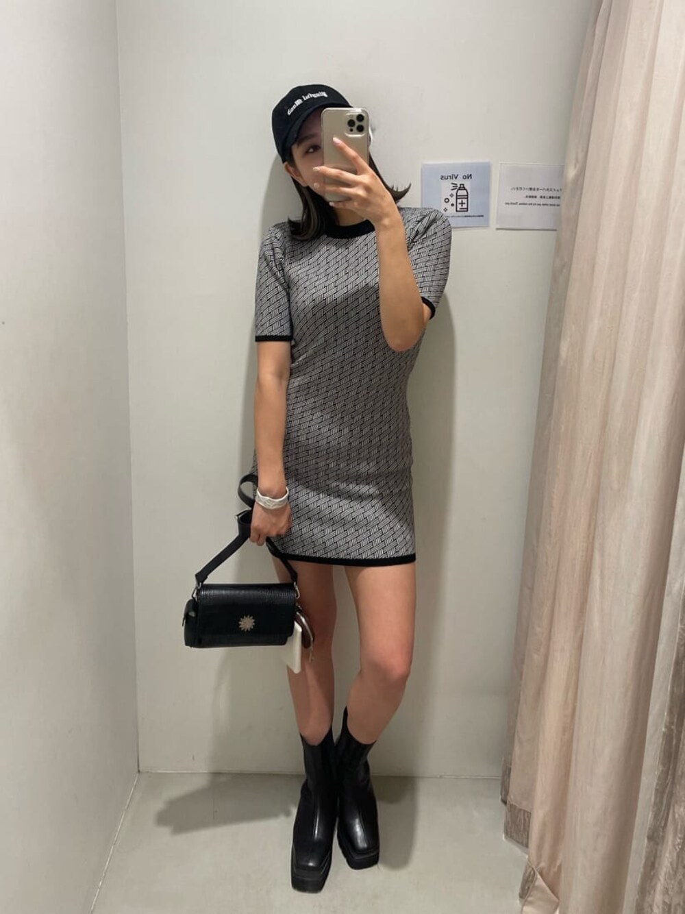 【キレイめ✖️カジュアルのミックスコーデ♡】 【ワンピース】 ジャガード柄でかなりモチっとした柔らかい素材のニットワンピース! 164cmの私でもしっかりワンピースとして着用できる丈感です?袖丈も5分袖くらいなので二の腕カバーになりオールシーズン着用できる素材なので、秋にはライダース合わせもおすすめです♡ 【ブーツ】 24.5cmでLサイズ着用です。 【bag】 ミニポーチが3つ付いたショルダーバッグ! 取り外し可能なので、好きなようにカスタム出来るので他のbagに付けるのも◎
