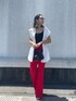 【カラーアイテムを使った大人コーデ!】 【キャミソール】 カップ付きで1枚で着用可能です。 しっかり体にフィットしてくれます。 【シャツベスト】 ワンピース、トップス、羽織りの3wayで使える万能アイテム! 164cmでもしっかりヒップが隠れるくらいで着れて、 ハリ感のある素材なので大人な印象になります♡ 【パンツ】 フレアのシルエットで、164cmでMサイズを着用しあえてゆるっと感を出しました♡ Sサイズだとスニーカーでも合わせられます◎ 生地感もしっかりしてるのでオールシーズン着用出来ます! 【BAG】 EMODAのレザーバッグ! コンパクトですが深さがしっかりあるので容量も入りますし、シンプルでデザインが無いからこそ合わせやすいです! 【シューズ】 24.5cmでLサイズ着用です。