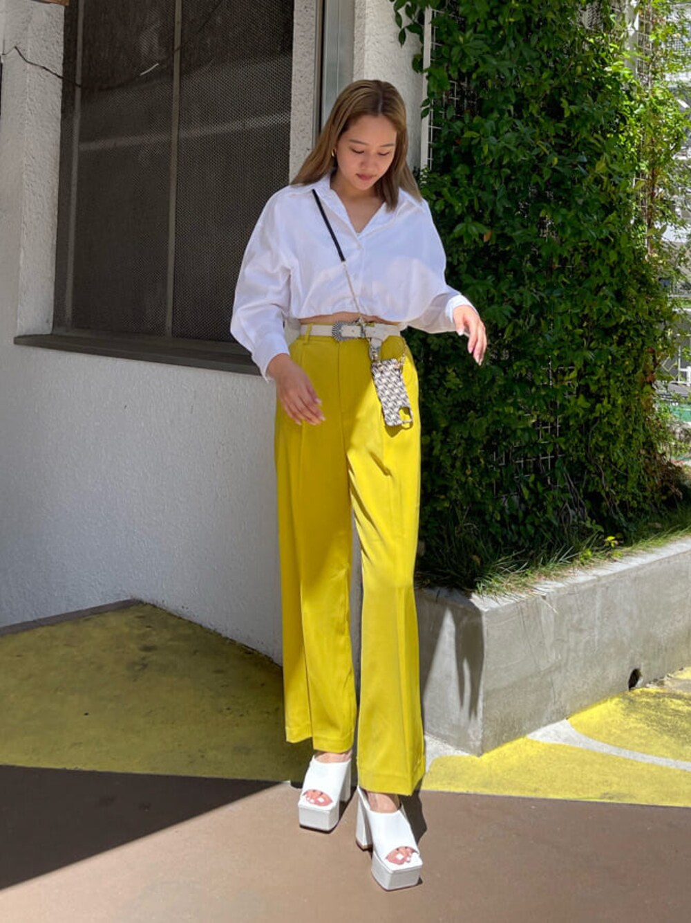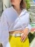 【カラーパンツを主体とした大人めコーデ】 【トップス】 ウエストにゴムが入ったショート丈のシャツ! 丈感は短めなのでハイウエストのボトムと合わせてもチラッと肌見せ出来るシルエットなので脚長効果抜群♡裏地付きなので透けにくい作りになっています! 【パンツ】 164cmでSサイズ着用しておりスニーカーでも合わせられる丈感です!サラッとした素材なので夏でも快適に履けるパンツ♡明るめカラーでも大人っぽい印象のブラウスと合わせるとキレイめコーデに😆 【シューズ】 24.5cmでLサイズ着用です。