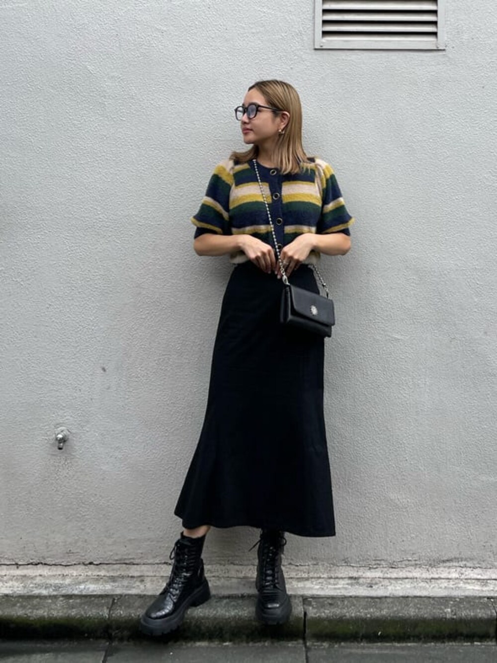 【カラーを取り入れた30代コーデ♡⃛】 【ニット】 レトロ風なボタンが可愛く、パフスリーブなので二の腕カバーに◎ トップスとしてもカーディガンとしてもお使い頂ける万能アイテム♡ 柔らかいシャギー素材なので肌触りも良いです☺️ 丈感が短過ぎないのでボトムを選ばず着用できます! 【スカート】 マーメイドシルエットのロングスカート! こちらはS.M展開でのご用意となっており、腰周りはゆったりとした作りになっています。164cmでSサイズでもくるぶしくらいなので長めのサイズ感です。 スーパーハイウエストなのでショートTとの相性も抜群! 【bag】 ウォレットbagなのでお財布としてもお使い頂けて、 ファンデーションやリップなども入ります! 【シューズ】 24.5cmでLサイズ着用です。