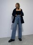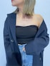 【ジャケットを主体としたカジュアルコーデ】 【ジャケット】 少し薄手で秋仕様のジャケット! 164cmでヒップが隠れるくらいなのでワンピ風で着用できます♡ネイビーカラーなのでオフィスカジュアルっぽくなり過ぎずオシャレな見え感に◎ オーバーサイズですが肩周りの作りはスッキリとした着用感なので肩幅が気になる方も手に取りやすいと思います♡ 【デニム】 164cmでSサイズ着用です。 サイドにトレンドのスラッシュが施されており、 EVRISの中では丈感が少し短めの作りになっています! ウエストにデザインがあるのでインスタイルの際によりオシャレに☺️ そして!トレンドのサイドスラッシュはスラッシュ部分に隙間が出来る事で細見え効果も◎ 【ベアトップ】 カップ付きなので1枚で着用可能です! 【シューズ】 24.5cmでLサイズ着用です。