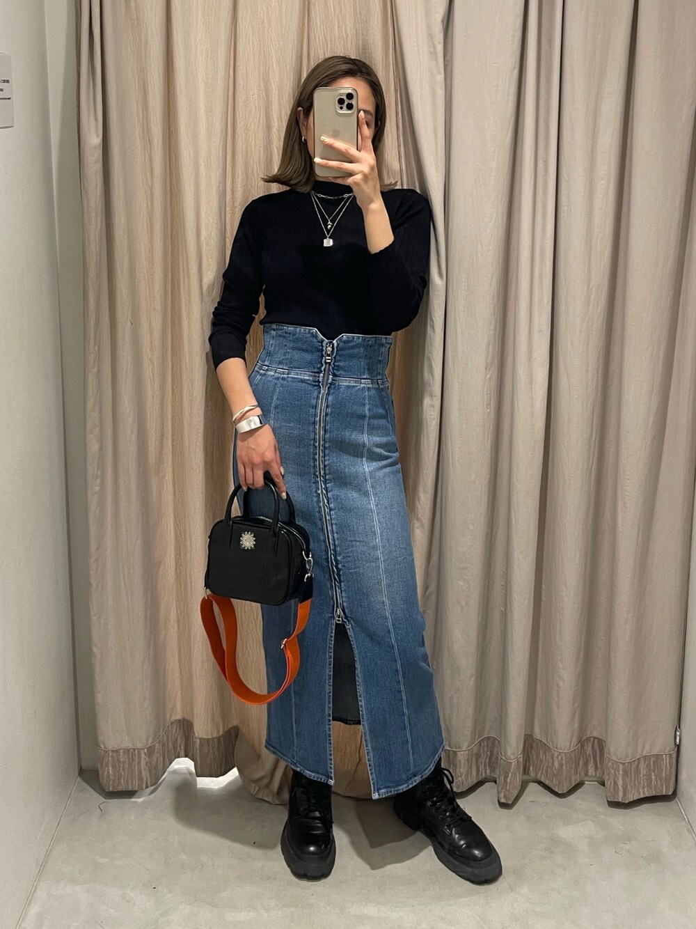 【大人カジュアルコーデ❤️】 taps⇒伸縮性のあるベーシックなトップス。 ワイドなリブ素材なので細見え効果もあり この時期アウターのインナーとしてお使い頂きやすい1枚です。 skirt⇒スーパーハイウエストなのでおへそより指2本分くらいの位置までくる為、かなり脚長効果があります✌️ トレンドのZIPデザインで、タイトめなので大人っぽい印象になりつつ、デニムやZIPでカジュアルさも出る1枚です✨ bag⇒バイカラーBag! ショルダーとの色味の切り替えがかわいい♡ shoes⇒24.5センチでLサイズ着用です。