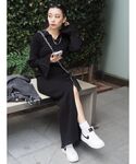 yumeka(EVRIS)のワンピース「シャツニットロングワンピース」を使ったコーディネート