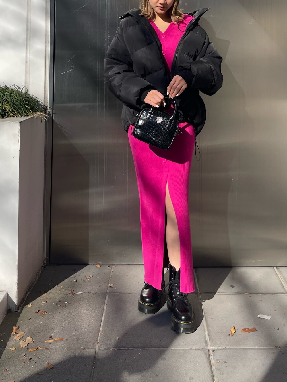 【1枚でオシャレに!楽ちんワンピース♡】 onepiece⇒モチっとした素材で柔らかいロングニットワンピ! センターにはディープスリット入りでさり気ない肌見せなので女性らしい印象に🥰 袖口もスリットが入っているので着るだけで動きが出るワンピースです。 フロントボタンがある事でカジュアルなイメージにもなるのでスニーカーと合わせるのも◎ 春カラー🌸で派手に✌️ outer⇒ダウン60%が入っていて、とにかく軽い!ほんとに軽さと暖かさがポイントなので1枚持ってて間違いなしです👍 bag⇒ショルダーとのバイカラーがかわいい♡ shoes⇒24.5センチでLサイズ着用です。