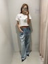【大人カジュアルコーデ🫧】 トップス⇒ FRUIT OF THE LOOMとのコラボTシャツです! クロップド丈で少し肌見せをしながら着るのが夏っぽくてかわいいTシャツです。 フロントにはFRUIT OF THE LOOMのロゴ、バックスタイルにはEVRIS(エヴリス)10周年のオリジナルロゴが入っています👍 デニム⇒ルーズなシルエットが特徴のワイドパンツ! ウエストのボタンでハイウエストとローウエストの調節が可能になっています👍 今年トレンドの、あえてゆるタボっとしたシルエットが可愛い1枚🤍 私はミュール合わせでキレイめになるようにバランスを取っています! シューズ⇒24.5センチでLサイズ着用です。