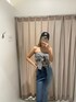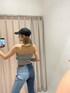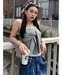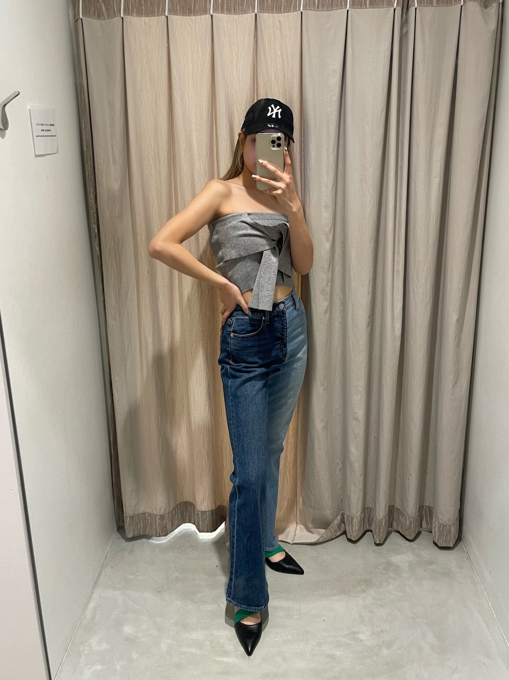 【気温32℃コーデ🌞🌴】 トップス⇒EVRISの復刻版ビスチェ♡ フロントがリボンになっていて、1枚でもTシャツとレイヤードしてもかわいい✨ 伸縮性のあるニットなので着心地◎でフィット感もしっかりあります! デニム⇒164センチMサイズ着用。 EVRISのデニムの中では少し丈感が短めなので スニーカーとも合わせやすい1枚です! バイカラーがEVRISらしいデザインと後ろのポケットには【E】のモチーフ入り♡ シューズ⇒24.5センチでLサイズ着用です。