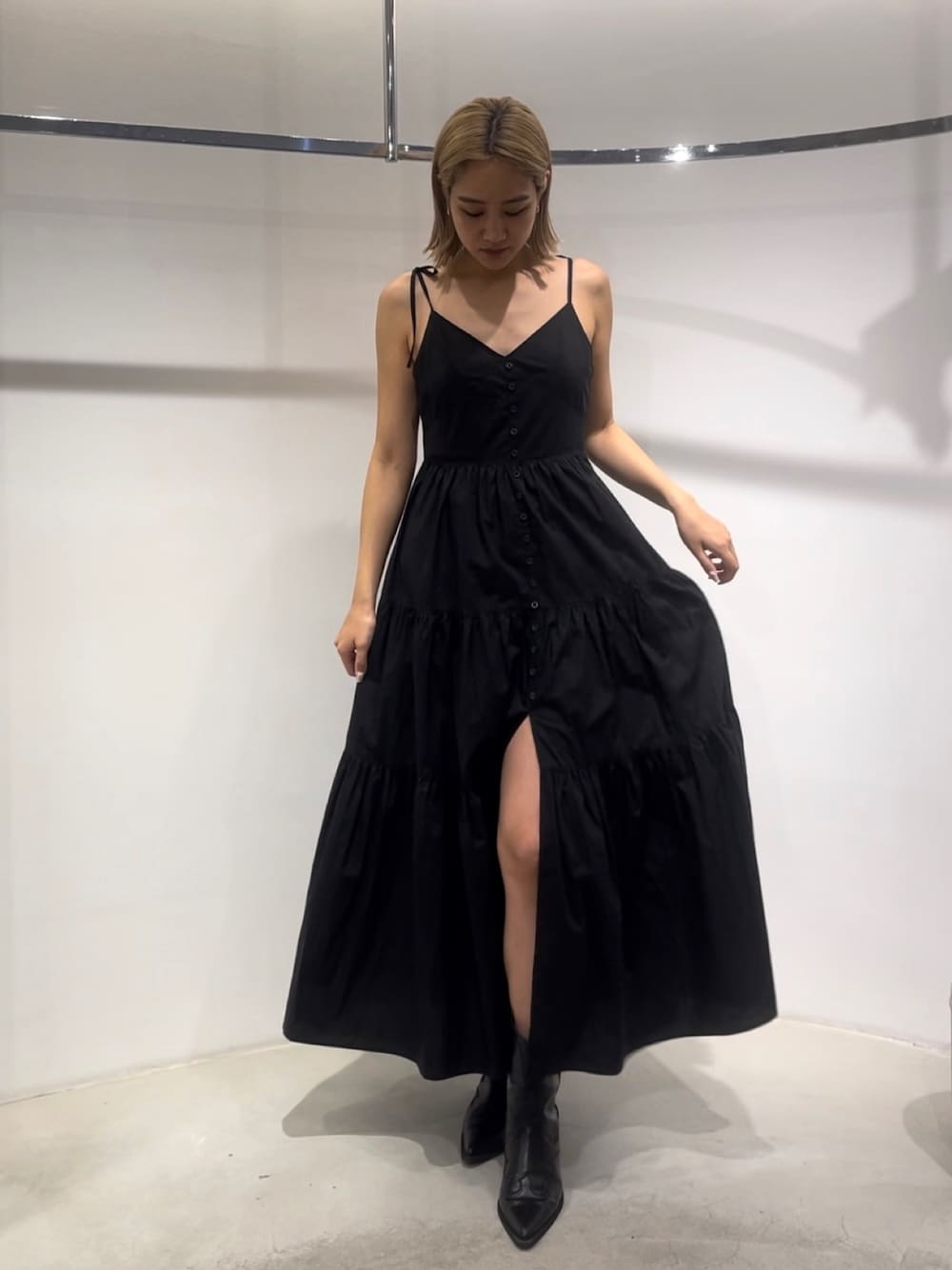 【夏のティアードワンピコーデ♡】 onepiece カップ付きで1枚で着用できるティアードワンピ✨ 肩のショルダーで調節可能なので胸元の開き具合は調節できます! センターにスリット入っているので歩くと動きが出て可愛い🩵 パリッとしたハリ感のある素材です! shoes EMODAのブーツです。 24.5cm、Lサイズ着用です。