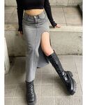 yumeka(EVRIS)のデニムスカート「【インナーショーパン付き】ディープスリットデニムロングスカート」を使ったコーディネート
