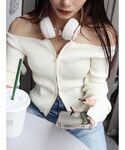 yumeka(EVRIS)のニット/セーター「フロントジップオフショルニットトップス」を使ったコーディネート