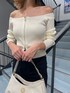 【肌見せ×カジュアルコーデ✨】 tops ⇒伸縮性のある素材を使用したフロントジップトップス✨️ ジップで空き具合の調節も可能ですし オフショルではなくスクエアネックでも着用できます! カラー展開が秋らしさ◎ denim ⇒ウエスト部分がさり気ない肌見せで、くびれを作ってくれるので細見え効果◎ 下着は見えない作りなので1枚でサラッと履けちゃいます! bag ⇒長財布もすっぽり入るくらい横長です。 肩掛けもし易いショルダーの長さです!