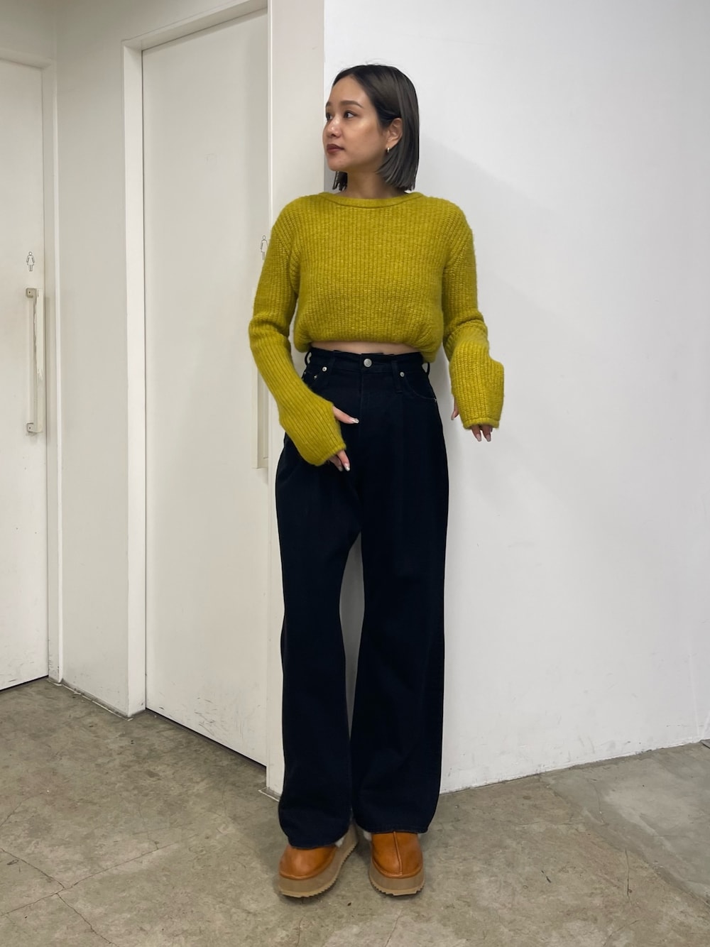 【秋カラーニットコーデ🍁】 knit ⇒ 発色のいい目を引くカラー展開がポイント♡ 肌触りのいいフェザー素材でスタイリングのアクセントになる1枚なのでシンプルコーデにオススメ! denim ⇒164センチでSサイズ着用です。 ウエストにタックが入っており、ワイドパンツデスが太すぎないサイズ感◎ shoes ⇒24.5センチでLサイズ着用です。