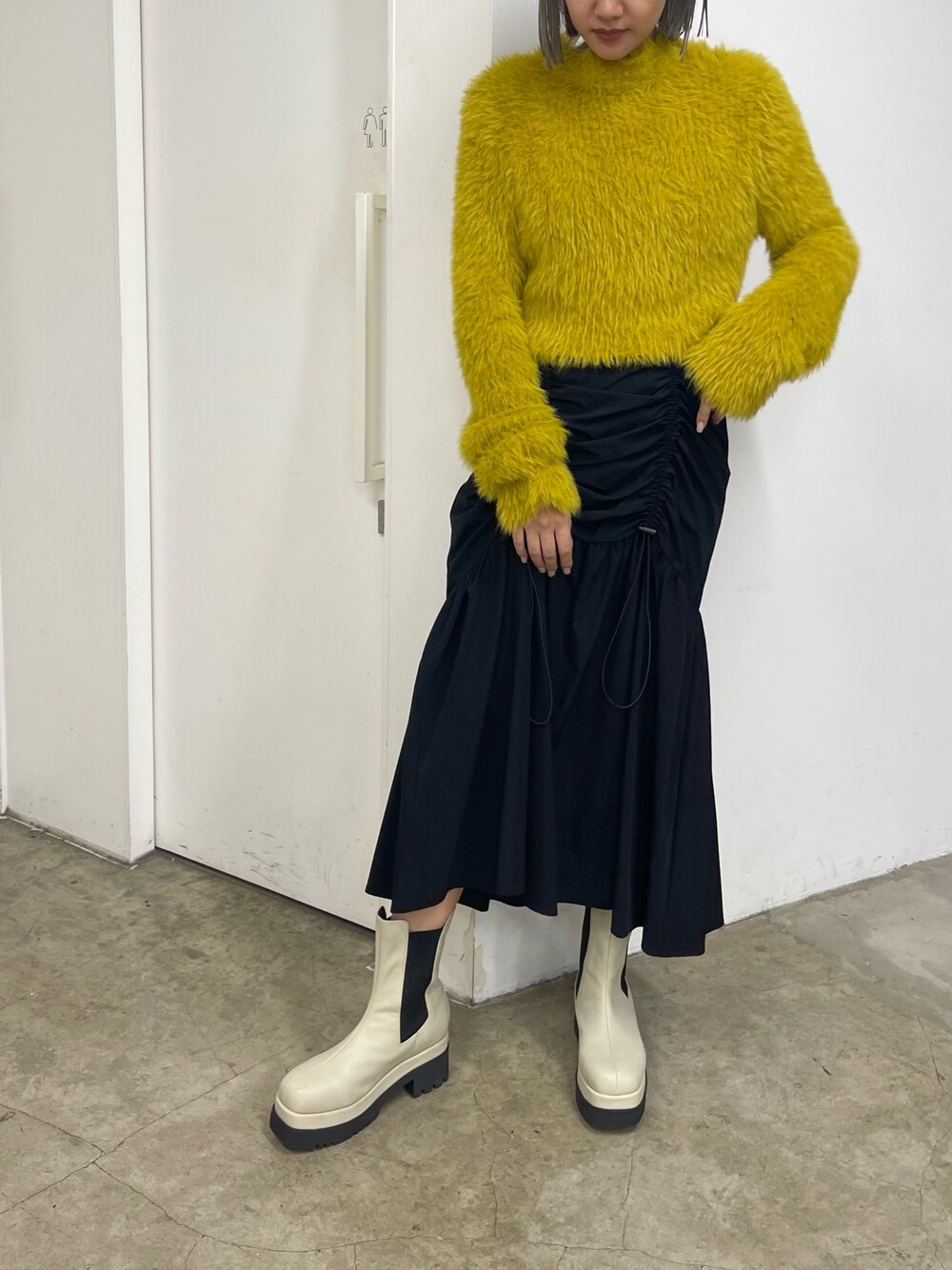 【カラーニットコーデ♡】 knit ⇒シャギーニット毎年トレンドのアイテム🩵 素材でインパクトが出せるのでコーデのポイントに✨ skirt ⇒ドロストのデザインがポイントとなったロングスカート☺️ ドロストで調節可能なので木の実の丈感で着て頂けます✨ さり気ない肌見せも可愛い♡ shoes ⇒24.5cmでLサイズ着用です。