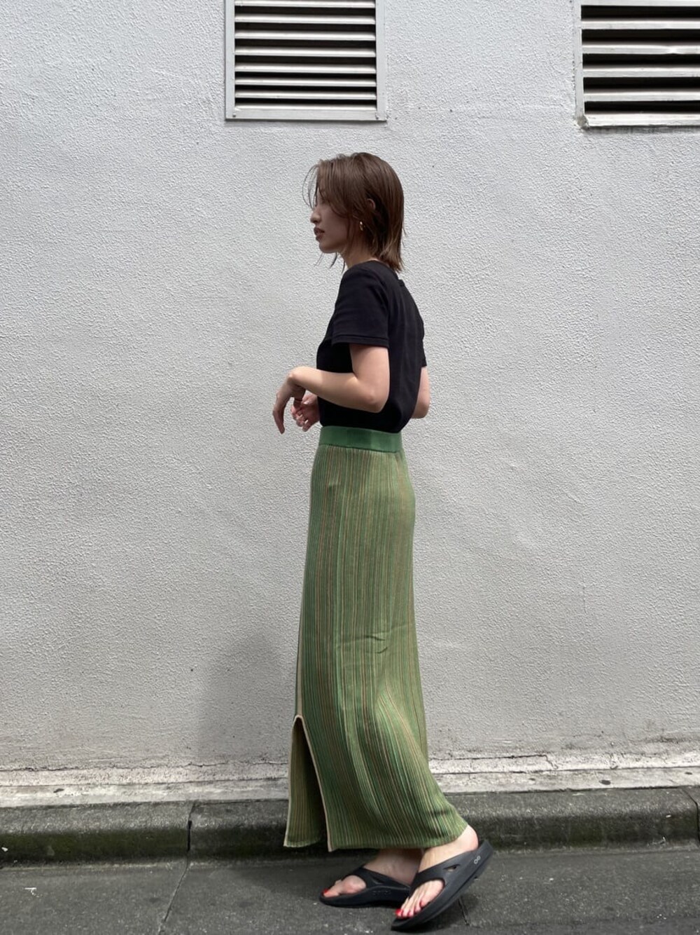 スリットが入っていて柔らかい生地感なので動きやすいスカートが映えるように、シンプルなトップスで纏めてみました♡