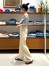 👕肩できちんと止まってくれるのでオフショルにしてもシルエットが綺麗!! ワンショルで着るのも可愛いです♡ 👖店頭でも大人気のデニム!! ルーズすぎずタイトすぎない絶妙なシルエットになっています🪽 160cm / 24インチ くるぶしにかかるくらいの丈感です!