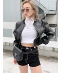 honoka(GYDA)のブルゾン「ウエストシェイプフェイクレザーショートブルゾン」を使ったコーディネート