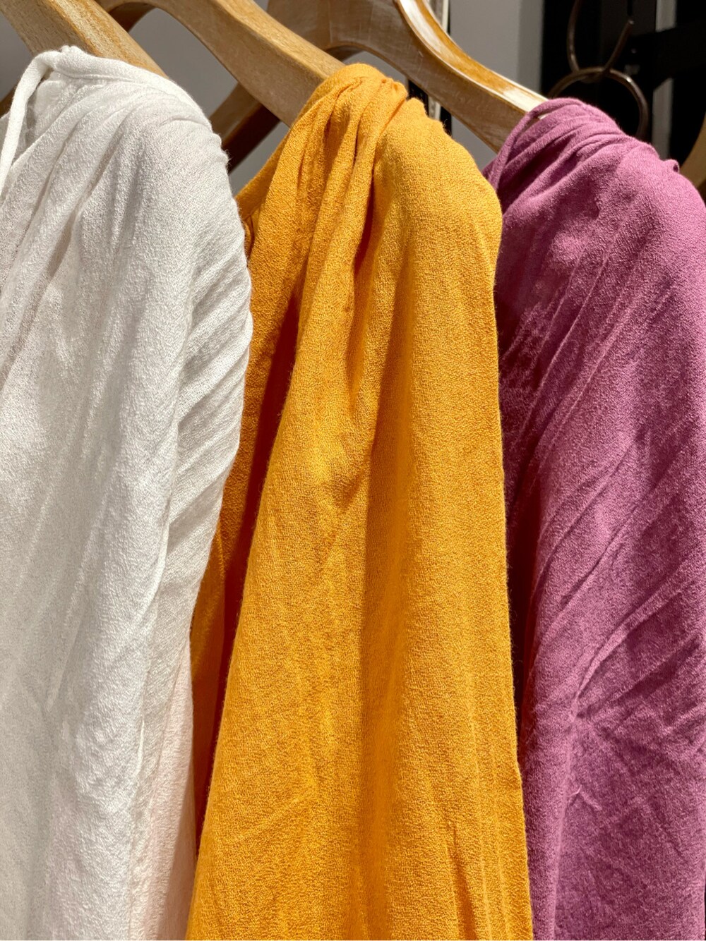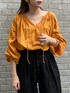 インドメイドならではの風合いが可愛いブラウス。 首元がVなのでネックレスで雰囲気変えられそうです。デニムとの組み合わせはもちろん◎ リネンパンツで大人ぽく合わせてみました!