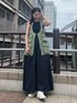 生地の切り替え位置を胸下なのでスタイルが良く見えるワンピ♡ポケット付きなのも嬉しいポイント😊上半身スッキリシルエットなのでミリタリーベスト合わせでラフに着るのもおすすめ✨