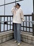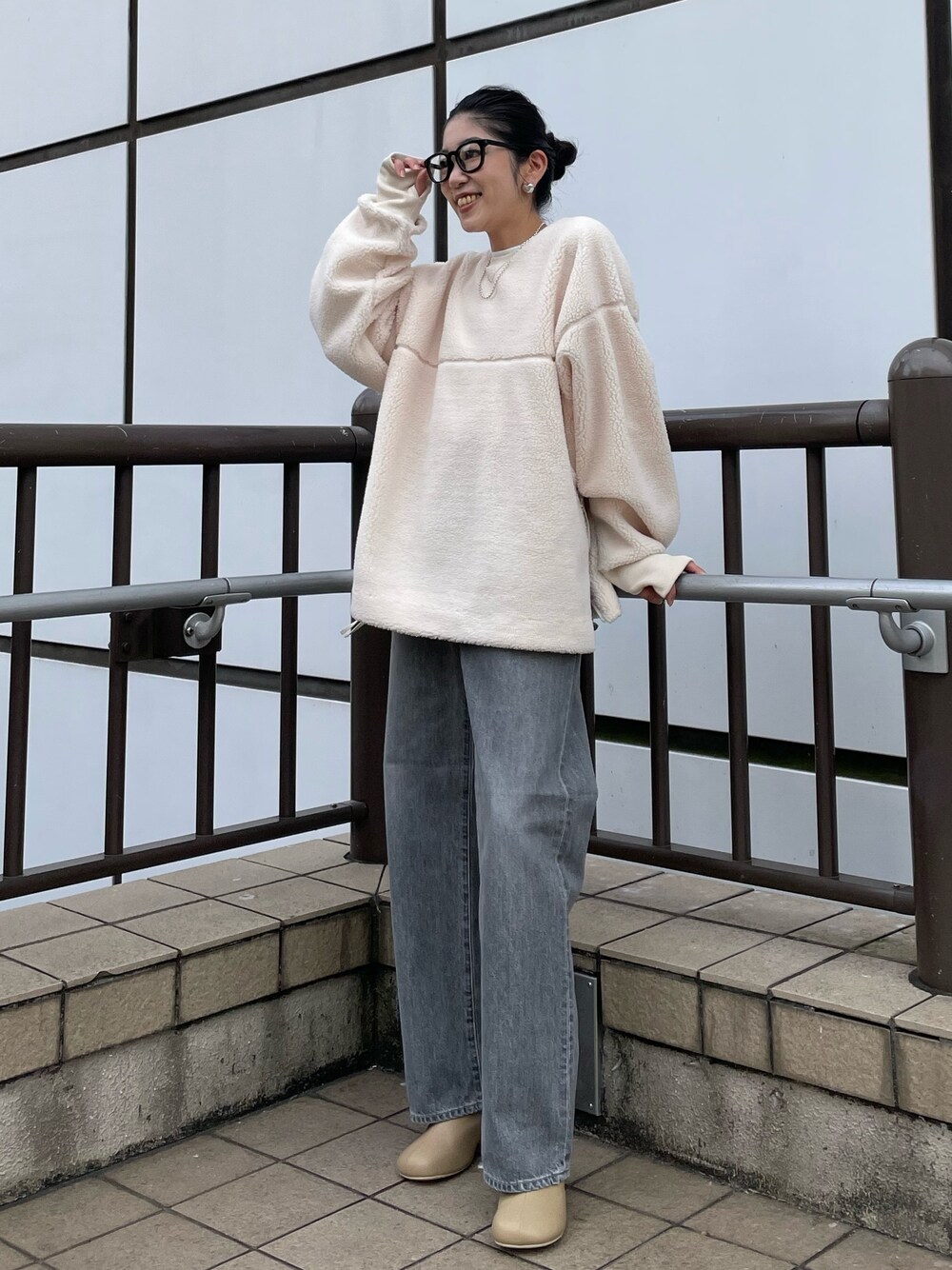 デザインが他にない履くだけでオシャレデニム🖤🩶トップスがシンプルでもスタイリングが決まるので是非おすすめな1着✨ボアトップスはアウター代わりになるくらい暖かくて軽いんですよ🐏✨