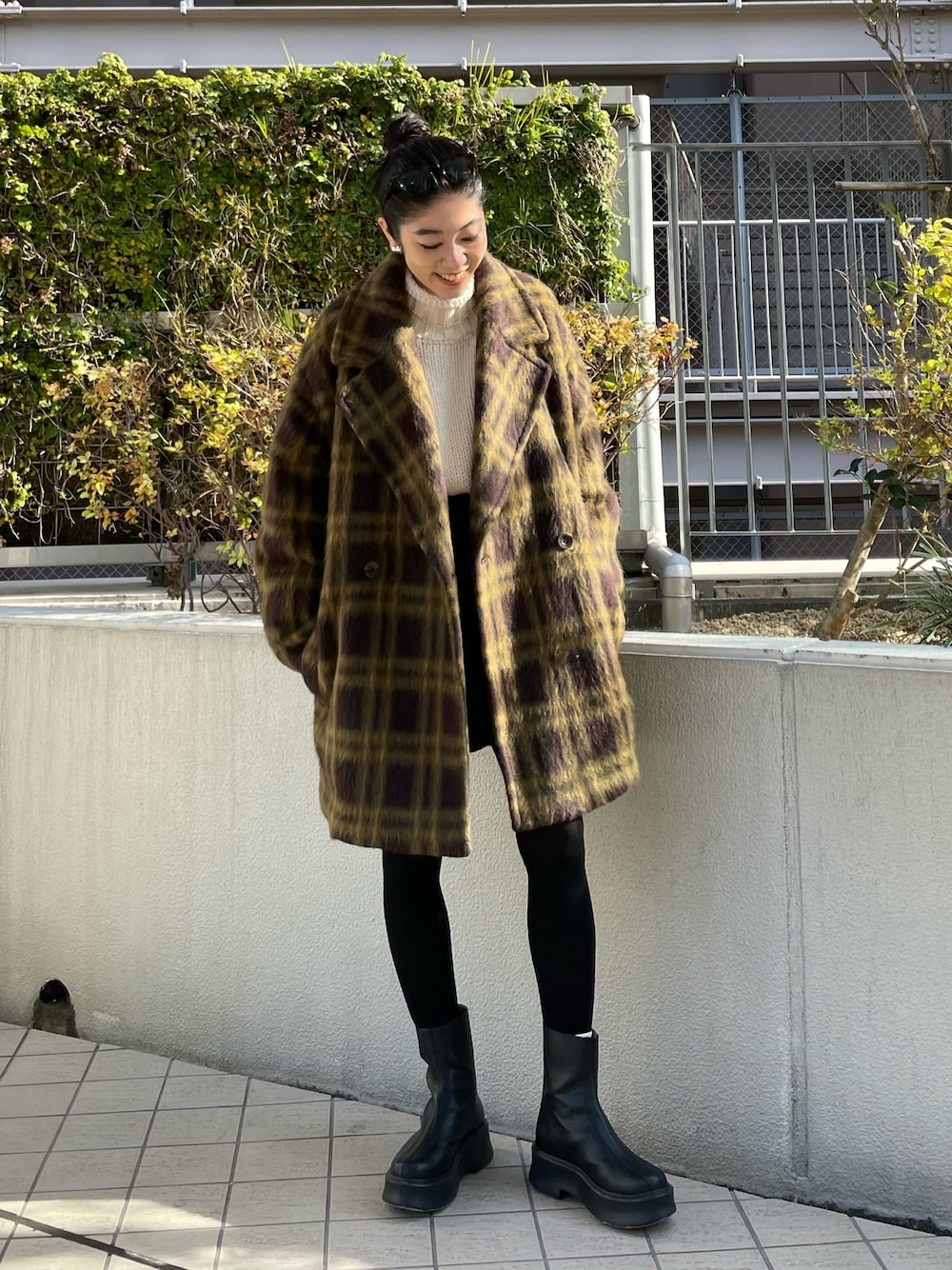 峯村真由(Ungrid)のピーコート「シャギーミドル丈コート」を使ったコーディネート