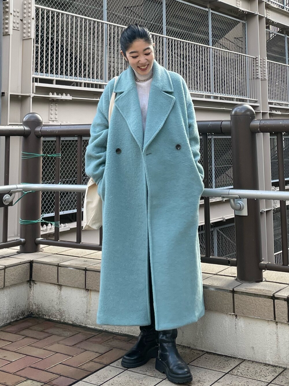 峯村真由(Ungrid)のチェスターコート「スライバーチェスターロングコート」を使ったコーディネート
