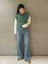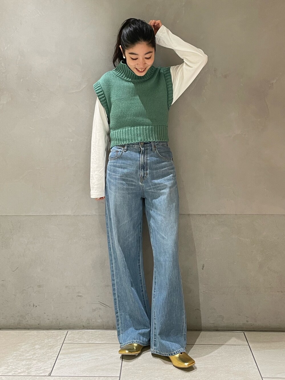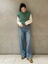 人気のワンピースのニットベストを着回してみました✨🔁 色味が綺麗なのでデニムとの相性抜群です💚🥦 インナーはロンteeで合わせましたがきちんと間を出すならシャツ合わせもおすすめです♡