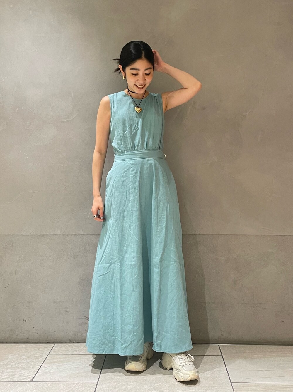 峯村真由(Ungrid)のワンピース「バックデザインノースリワンピース」を使ったコーディネート