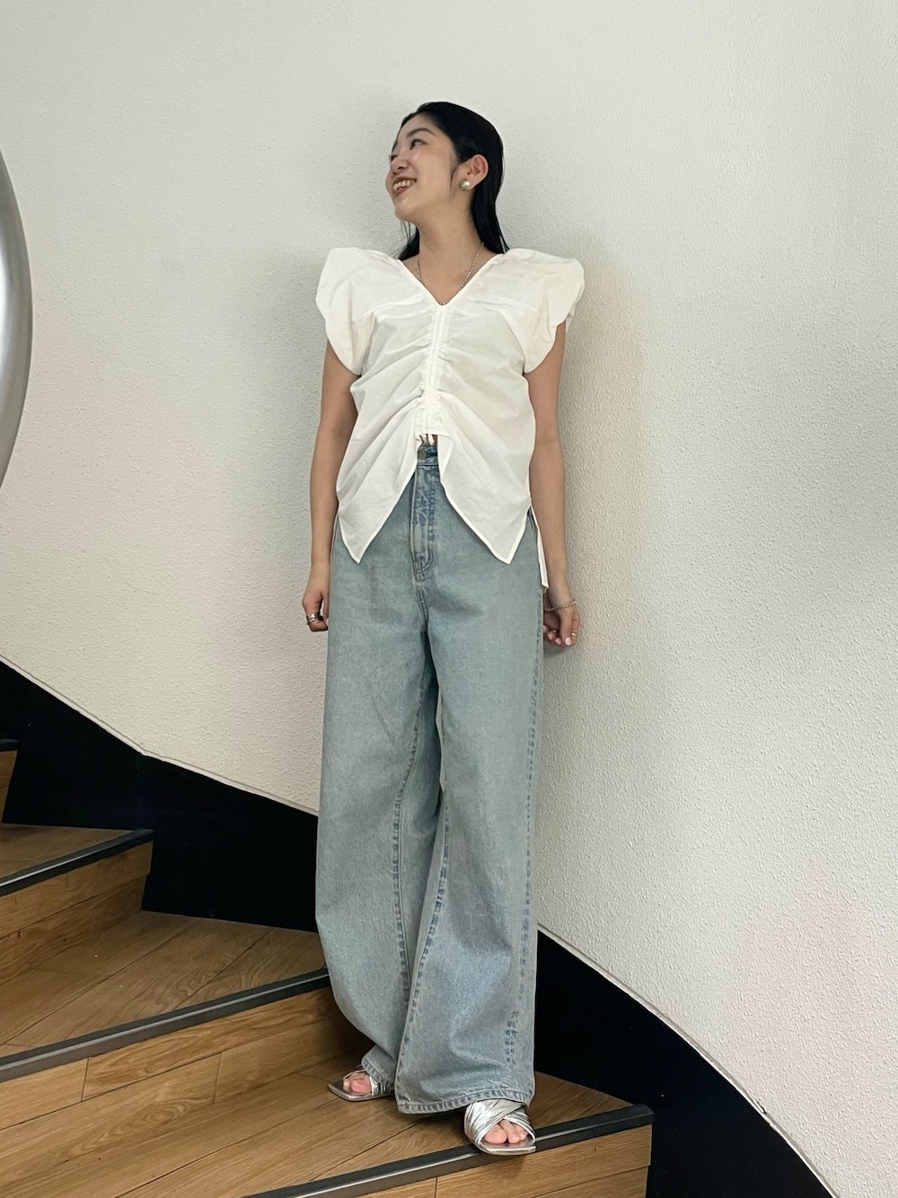 峯村真由(Ungrid)のシャツ/ブラウス「フロントギャザーブラウス」を使ったコーディネート