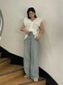 ボリューム感が可愛いブラウスは1枚でコーデの主役になります♡ フロントギャザーのアイラインと肩周りのボリュームが華奢に見せてくれます😊 ウエストの見えるデザインなので足長効果も抜群です🤍ボトムスにTOPSをインしたバランスも綺麗なのでおすすめです😊