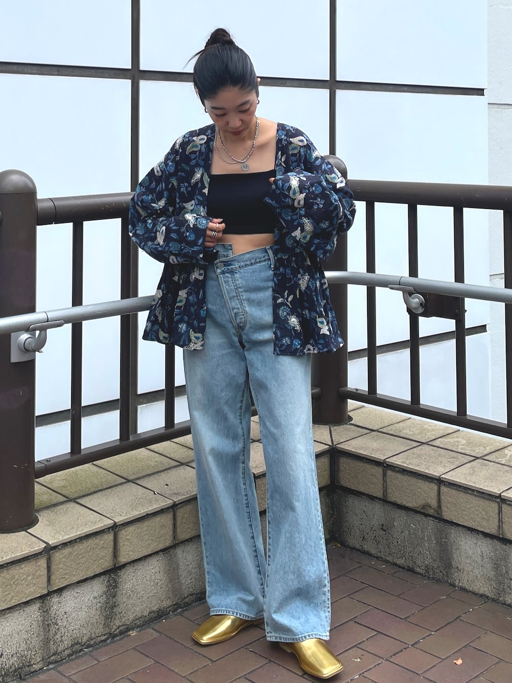 峯村真由(Ungrid)のデニムパンツ「リメイクデザインルーズデニム」を使ったコーディネート