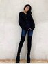 ざっくりニットにジップデザインがEMODAらしい1枚✌︎なんとこのジップ、開けてオフショル風にも着て頂けます♫着丈が短めなので、ハイウエストと合わせると脚長効果抜群です♡大人気のニーハイブーツで女性らしくしてみました☺︎