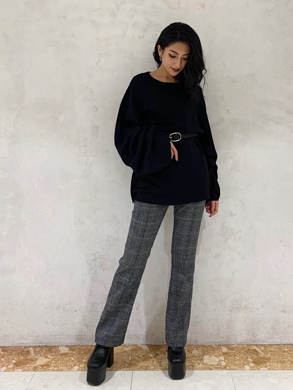 永田悠莉(EMODA)のその他パンツ「フロントジップフレアパンツ」を使ったコーディネート