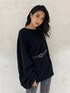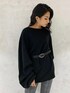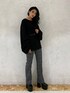 タックスリーブがポイントのロングニット!内側にタックを入れてるので自然にボリュームが出るルーズなシルエットがかわいいです♡首元も幅広めでデコルテが綺麗に見えます☺︎身長160cmでお尻が隠れる着丈なので、ミニスカートと合わせてワンピース風の着用もおすすめです✌︎