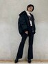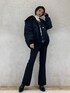 フェイクファードッキングのMA-1♡大きめの襟が小顔効果抜群です✌︎ボリュームスリーブで、横から見た時の丸みのあるシルエットがかわいい♡インナーはトレーナーですが、フレアパンツを合わせて大人っぽくしました☺︎