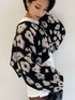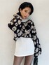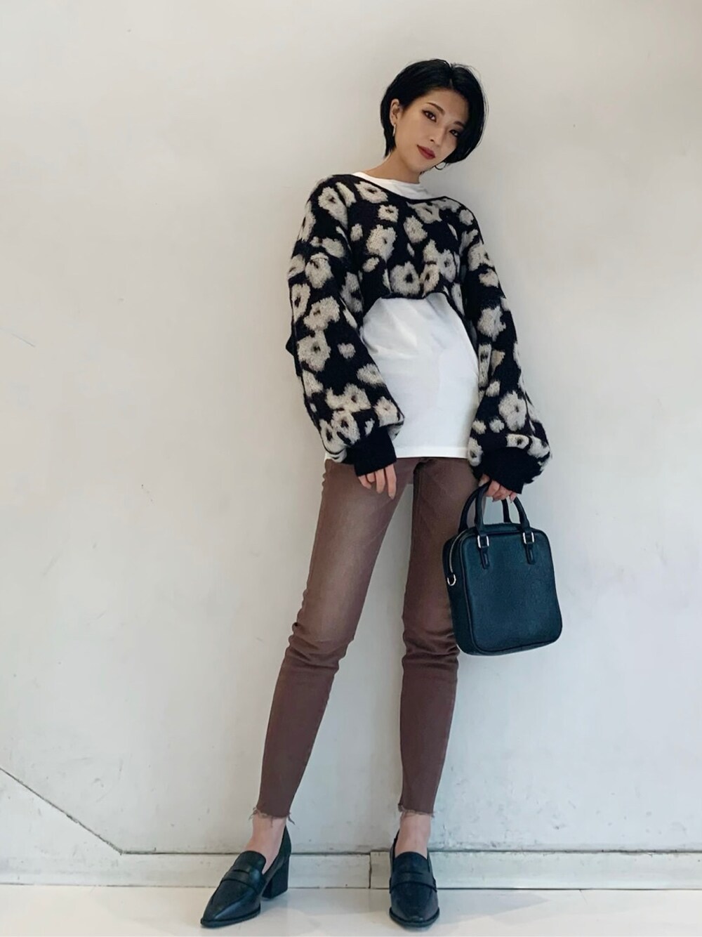 レオパードを花柄風にアレンジしたインパクト大のニット♡こちらも10周年アイテムです♫ショート丈で脚長効果抜群‼︎ブラウンのカラーデニムとローヒールで大人っぽくしました☺︎