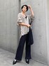 個人的にイチオシのシャツ♡ワッシャー加工入りで涼しげな印象なので、夏の日焼け対策にも大活躍間違いなしです♫総柄ですが、落ち着いた色味で大人っぽく見せてくれます☺︎インナーはキャミやタンクでちらっと肌見せもおすすめ‼︎私は黒メインで合わせてかっこよくしてみましたが、トレンドのアイボリー系の色とも合わせやすいのでぜひ取り入れてみてください✌︎