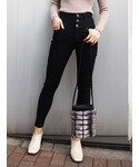 永田悠莉(EMODA)のサンダル「ボリュームタンクスクエアヒール」を使ったコーディネート