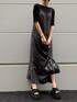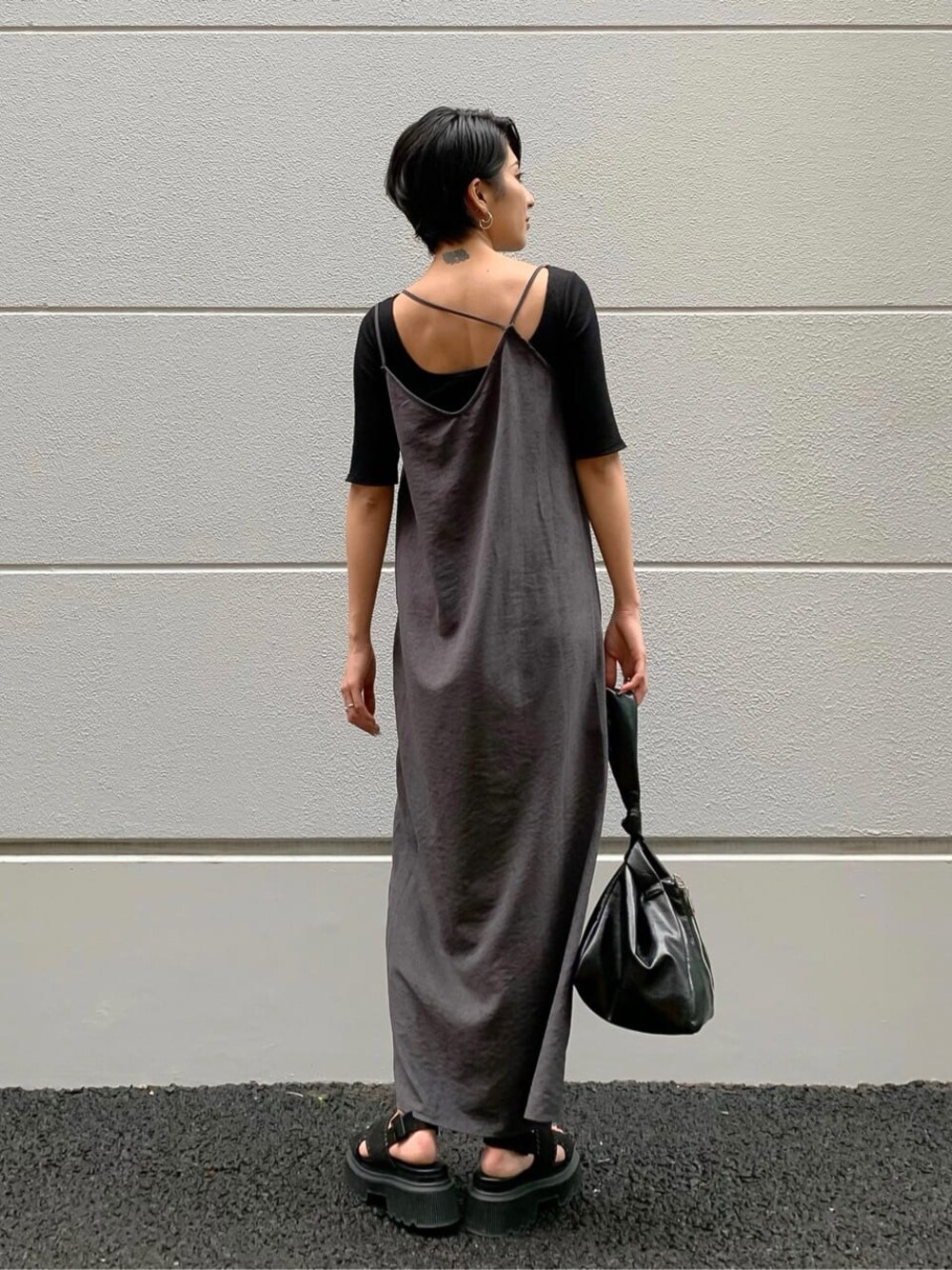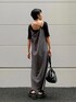 Iラインシルエットですっきりした印象のワンピースです♪ダブルストラップでアシンメトリーデザインがポイント✌︎前後どちらも着れる2way仕様なので、ショートヘアの方やロングヘアの方もヘアアレンジでゆるっとアップにして後ろを見せてもかわいい❤︎サイドにスリットが入っているのでパンツと合わせてかっこいいコーデもおすすめです‼︎☺︎1枚でも着用可能ですが、今の時期ならTシャツやタンクトップを合わせたり、秋冬はタイトなニットを合わせて頂けるので季節関係なく着回しできます♪合わせているトップスはなんとパット付き‼︎背中が大きく開いた、夏らしい肌見せスタイルができちゃいます❤︎今回は甘くなりすぎないよう、サンダルはスニーカーソールのカジュアルなものを選びました☺︎ヒールは6.5cmですが傾斜もなくラクに履いて頂けます♪
