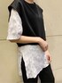 レイヤード風のデザイントップスです♡インナー部分はシワ加工で、他とは一味違うモードな印象をプラスしています✌︎着るだけでオシャレに見えるので、トップス1枚のコーデが増える夏にぴったりのお洋服です☺︎腰回りが隠れる着丈なので、スキニーやフレアパンツとの相性も抜群♪私はストレートのルーズパンツを合わせて、モノトーンでEMODAらしいコーデにしました☺︎下にトレンドのカラーパンツを合わせたり、ミニスカートを合わせて、ワンピース風に着ても可愛いです♡ベージュとアイボリーも展開しているので、ぜひチェックしてみてください‼︎☺︎